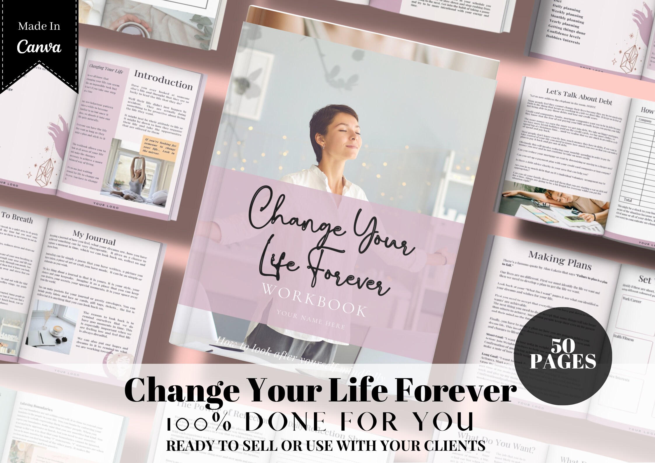 Change Your Life Forever Workbook & Ecourse 50 Page Done for You