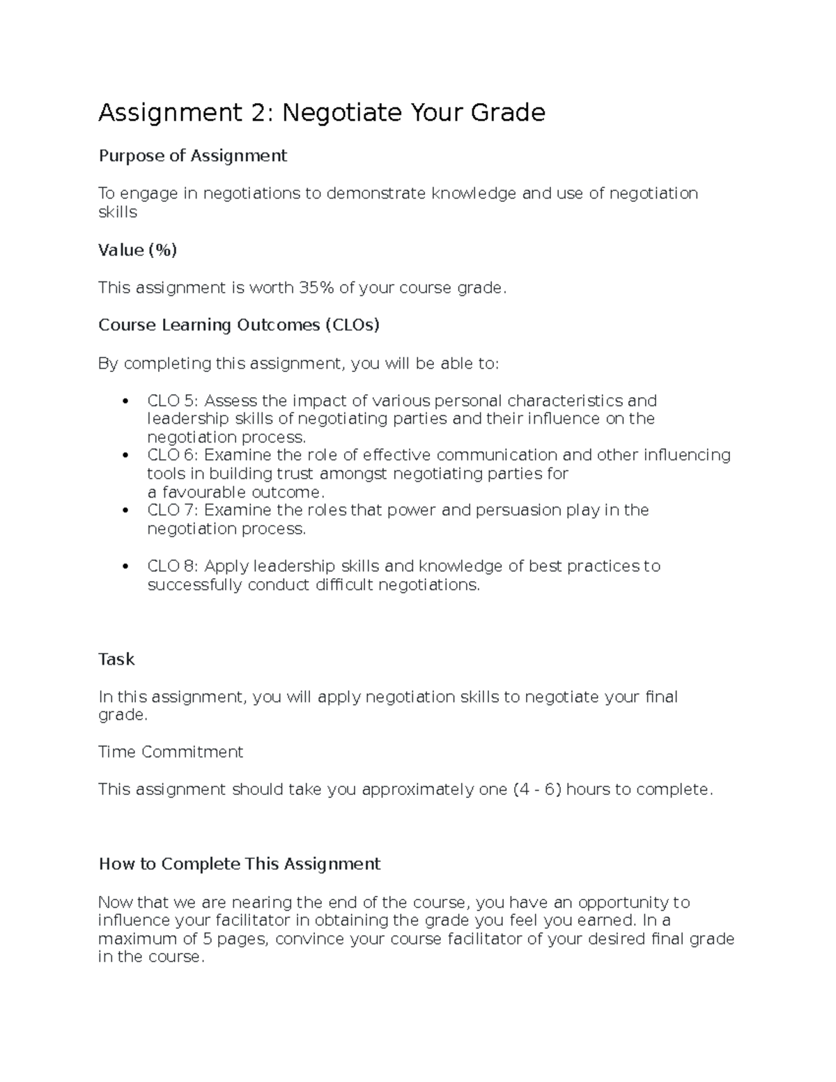 Attachment 1 - notes - Assignment 2: Negotiate Your Grade Purpose of